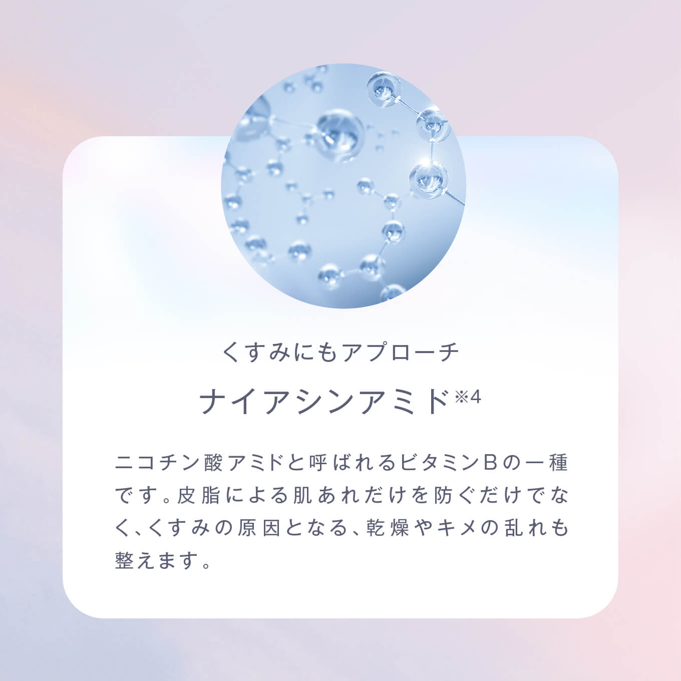 | 成分 | 水、BG、プロパンジオール、DPG、トリエチルヘキサノイン、スクワラン、トリ(カプリル酸/カプリン酸)グリセリル、ステアリン酸ソルビタン、ジメチコン、テトラヘキシルデカン酸アスコルビル、アゼロイルジグリシンK、パンテノール、グリシルグリシン、グリチルリチン酸2K、(アスコルビル/トコフェリル)リン酸K、トコフェロール、トロメタミン、ナイアシンアミド、アラントイン、ラウロイルグルタミン酸ジ(フィトステリル/オクチルドデシル)、マデカッソシド、アシアチン酸、マデカシン酸、アシアチコシド、セバシン酸、10-ヒドロキシデカン酸、1,10-デカンジオール、エクオール、ポリアクリレート-13、ステアリン酸グリセリル(SE)、エチルヘキシルグリセリン、ポリアクリレートクロスポリマー-6、ポリイソブテン、イソステアリン酸ソルビタン、ヤシ脂肪酸スクロース、ラウリン酸K、(PEG-240/デシルテトラデセス-20/HDI)コポリマー、ポリソルベート20、PPG-6デシルテトラデセス-30、t-ブタノール、ペンチレングリコール、リナロール、フェノキシエタノール |