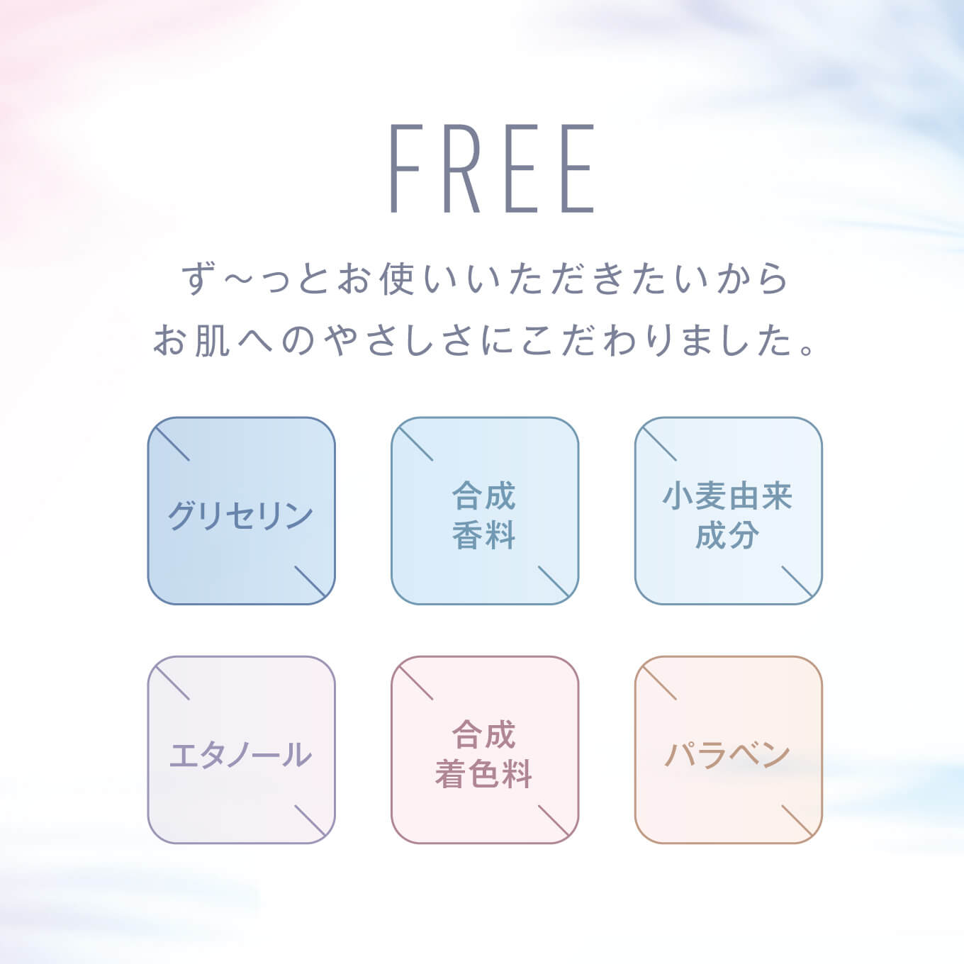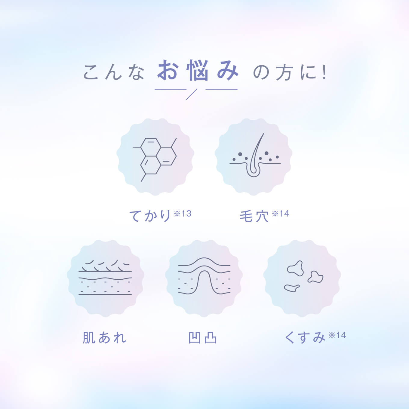 | ご使用上の注意 | 1.お肌に異常が生じていないかよく注意して使用してください。 化粧品がお肌に合わないとき即ち次のような場合には、使用を中止してください。 そのまま化粧品類の使用を続けますと、症状を悪化させることがありますので、皮膚科専門医等にご相談されることをおすすめします。 (1)使用中、赤味、はれ、かゆみ、刺激、色抜け(白斑等)や黒ずみ等の異常があらわれた場合 (2)使用したお肌に、直接日光があたって上記のような異常があらわれた場合 2. 傷やはれもの、しっしん等、異常のある部位にはお使いにならないでください。 3.目に入らないようご注意ください。目に入った場合はこすらず、すぐに水で洗い流してください。 |